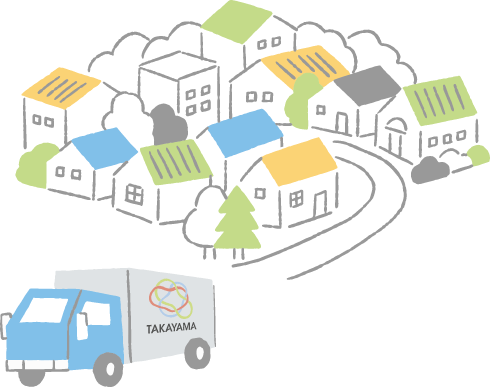 タカヤマ本社からおおよそ1時間以内でお伺いします。