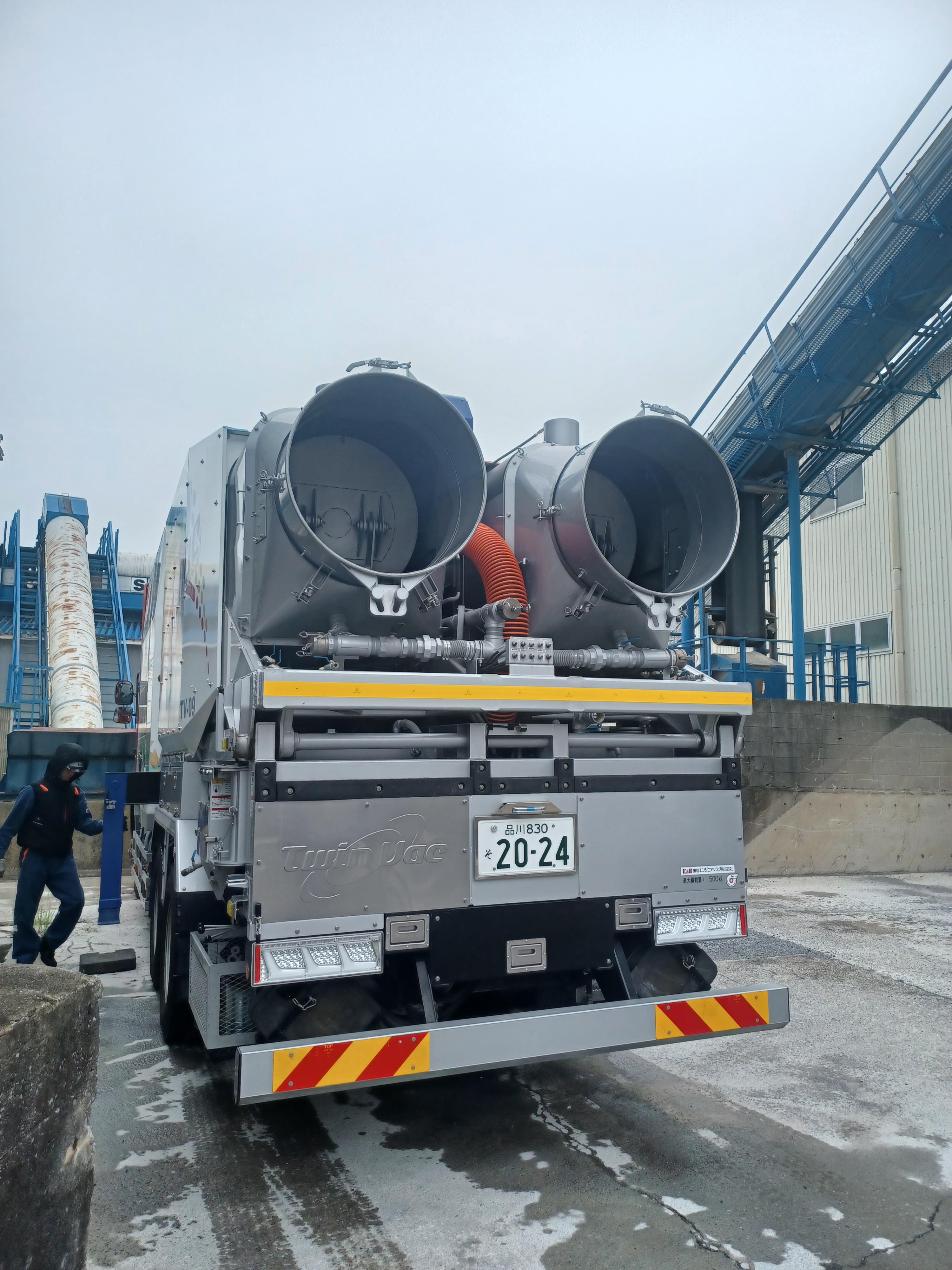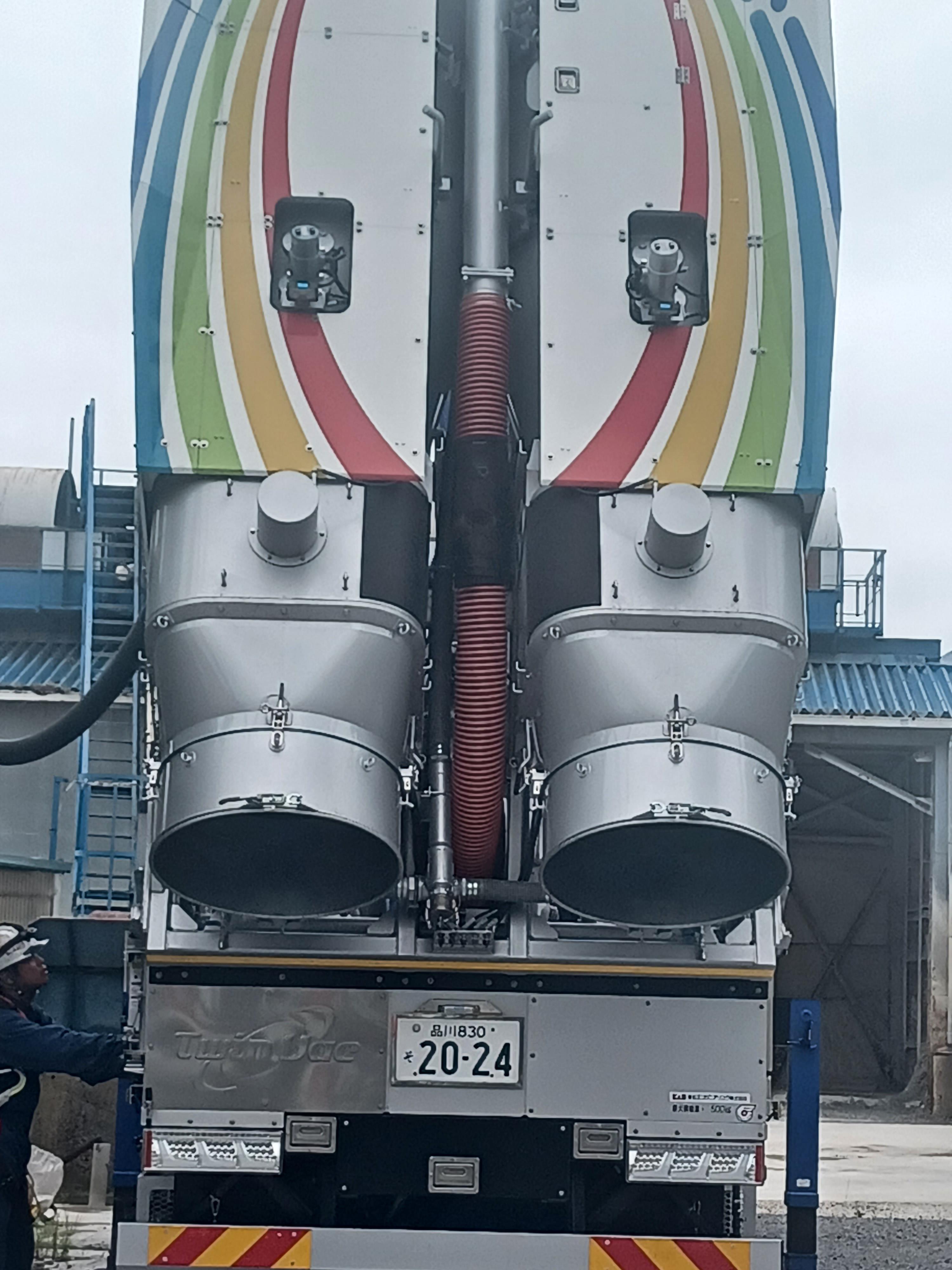 今回手配した車両は矢野口自工株式会社様のツインバックという粉体専用吸引車です。