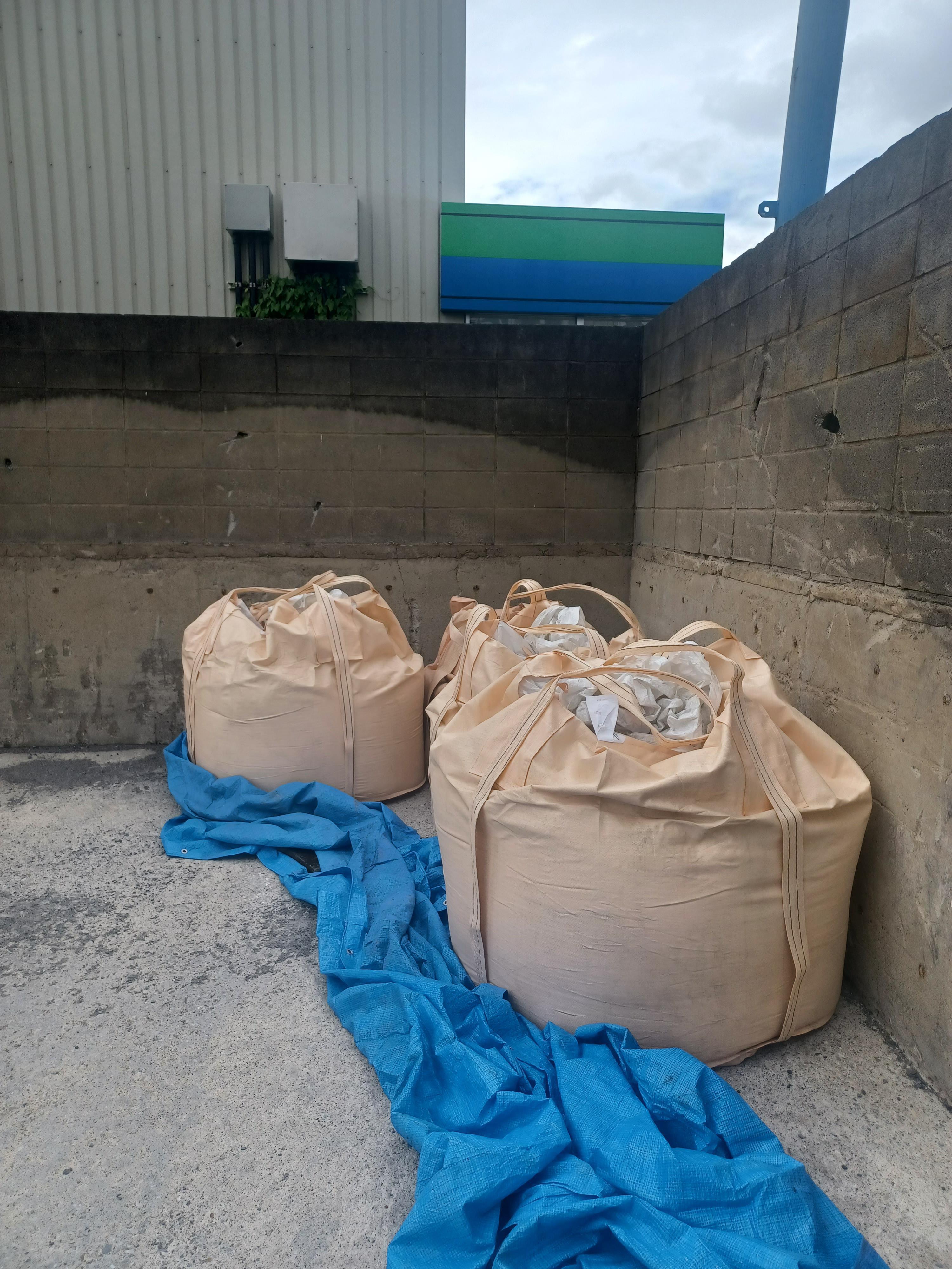 20トン全てを取り出した後、フレキシブルコンテナバッグ(以下フレコン)に詰めて作業完了です。