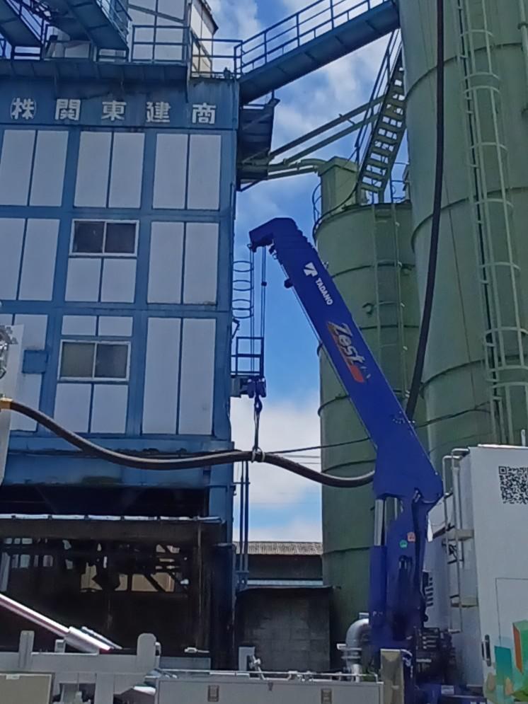 セメントサイロの取り出し口までホースを上げます。