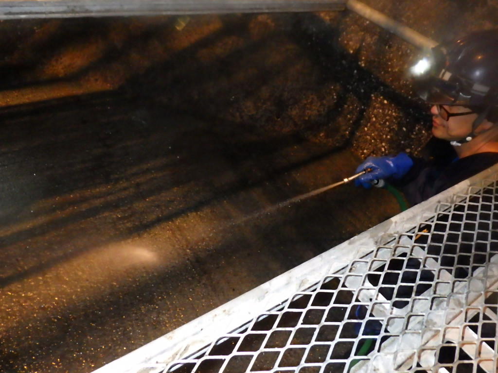 まずは槽内・壁面の汚泥や油分などの汚れを除去します。
