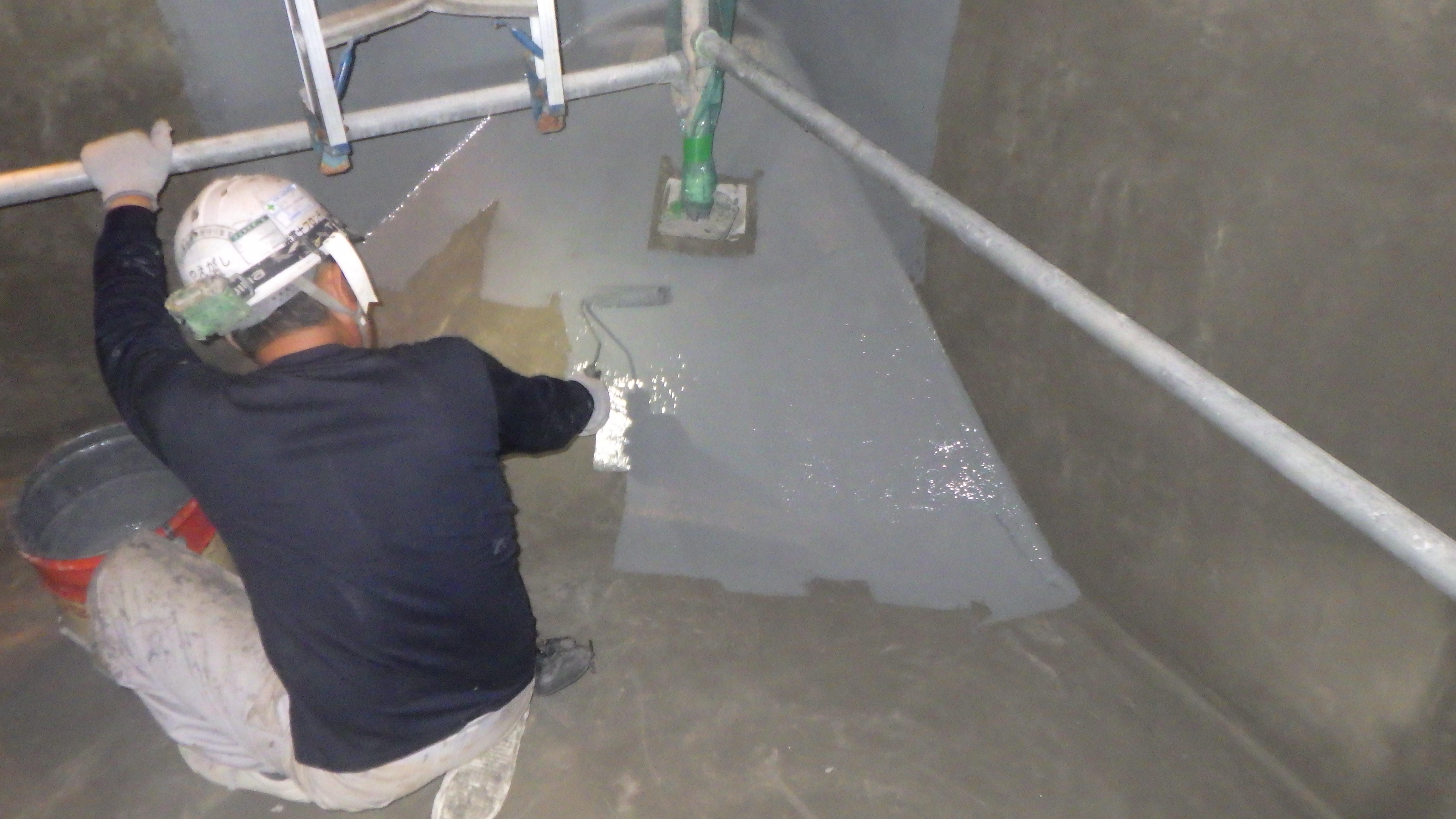 モルタルが乾いてから、エポキシ樹脂塗料を塗布します。