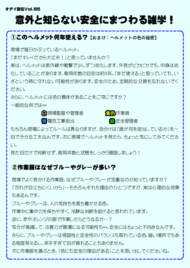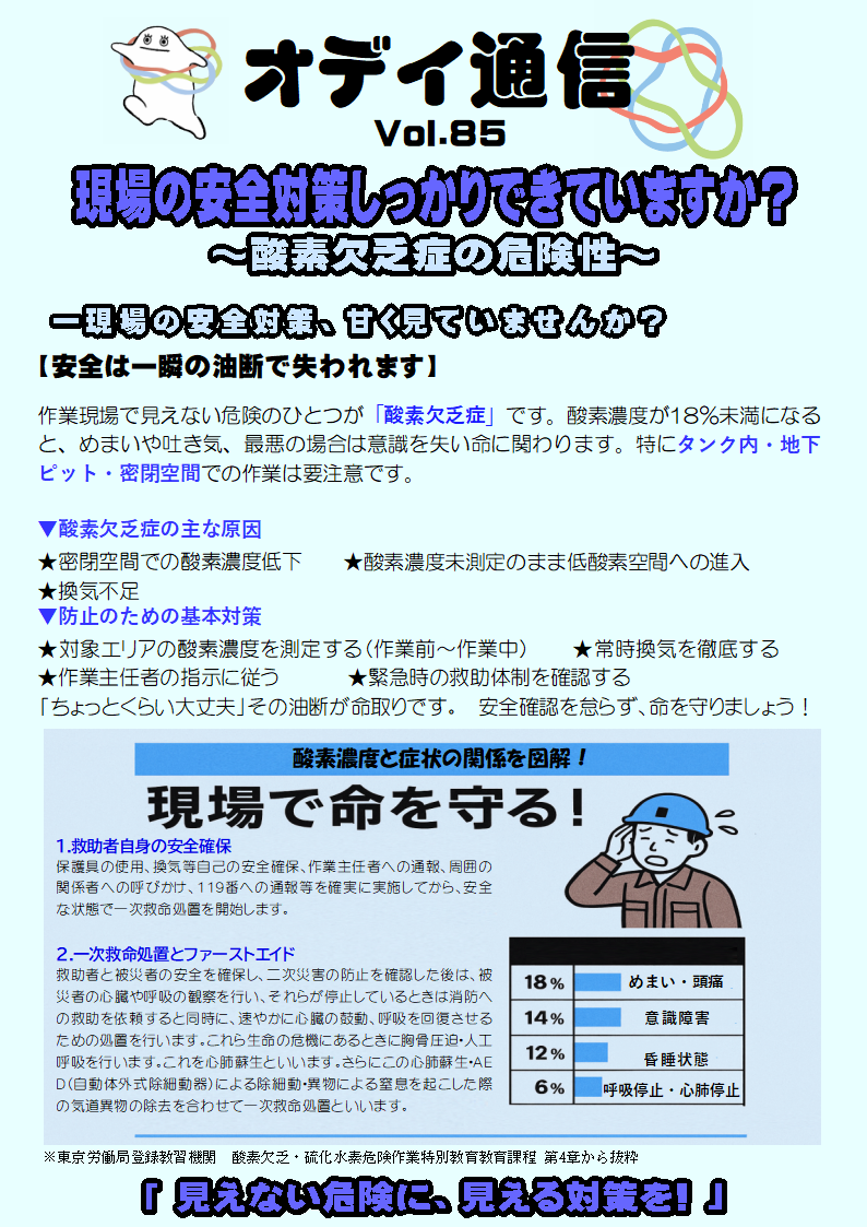 【オデイ通信85号】現場の安全対策しっかりできていますか?~酸素欠乏症の危険性~